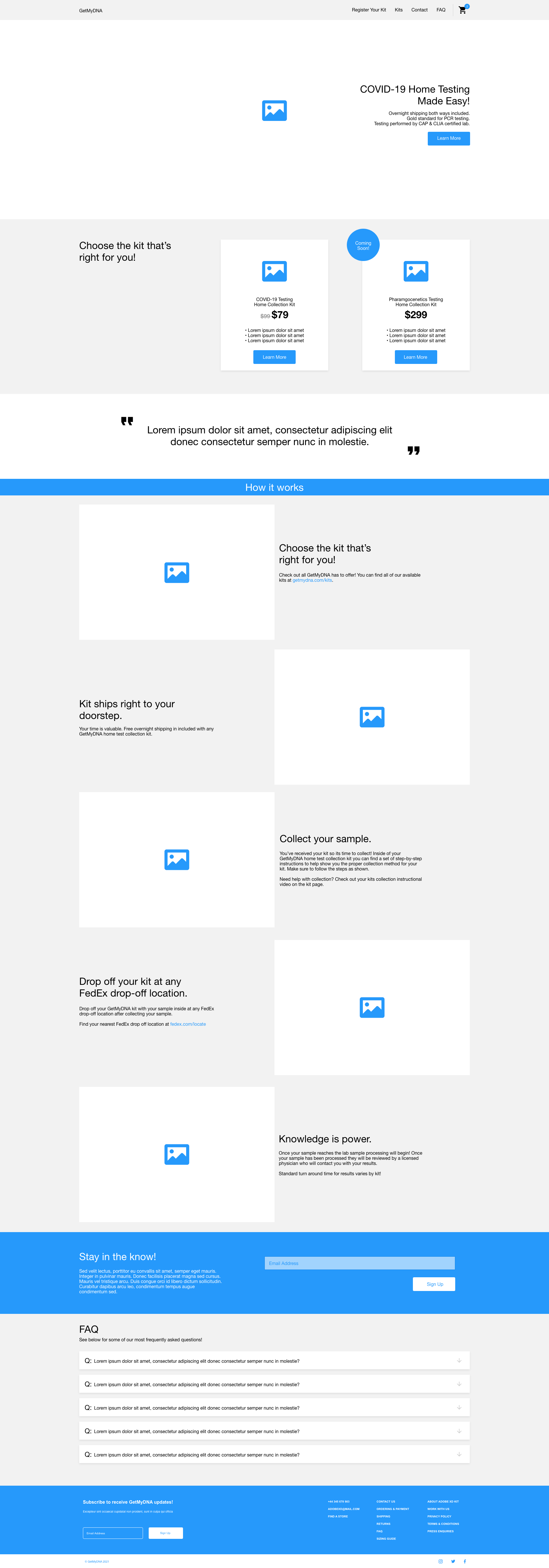 GetMyDNA is a home testing kit brand developed and owned by Gravity Diagnostics. The original goal of GetMyDNA was to sell Pharmacogenetics test kits. At the heights of the beginning of the COVID-19 pandemic Gravity Diagnostics began testing for COVID-19 and decided to add a COVID-19 Home Test kit to the GetMyDNA kit options. When i started Gravity/GetMyDNA i was tasked with the re-brand of GetMyDNA. Below you will see the developed brand as well as major projects that were created and